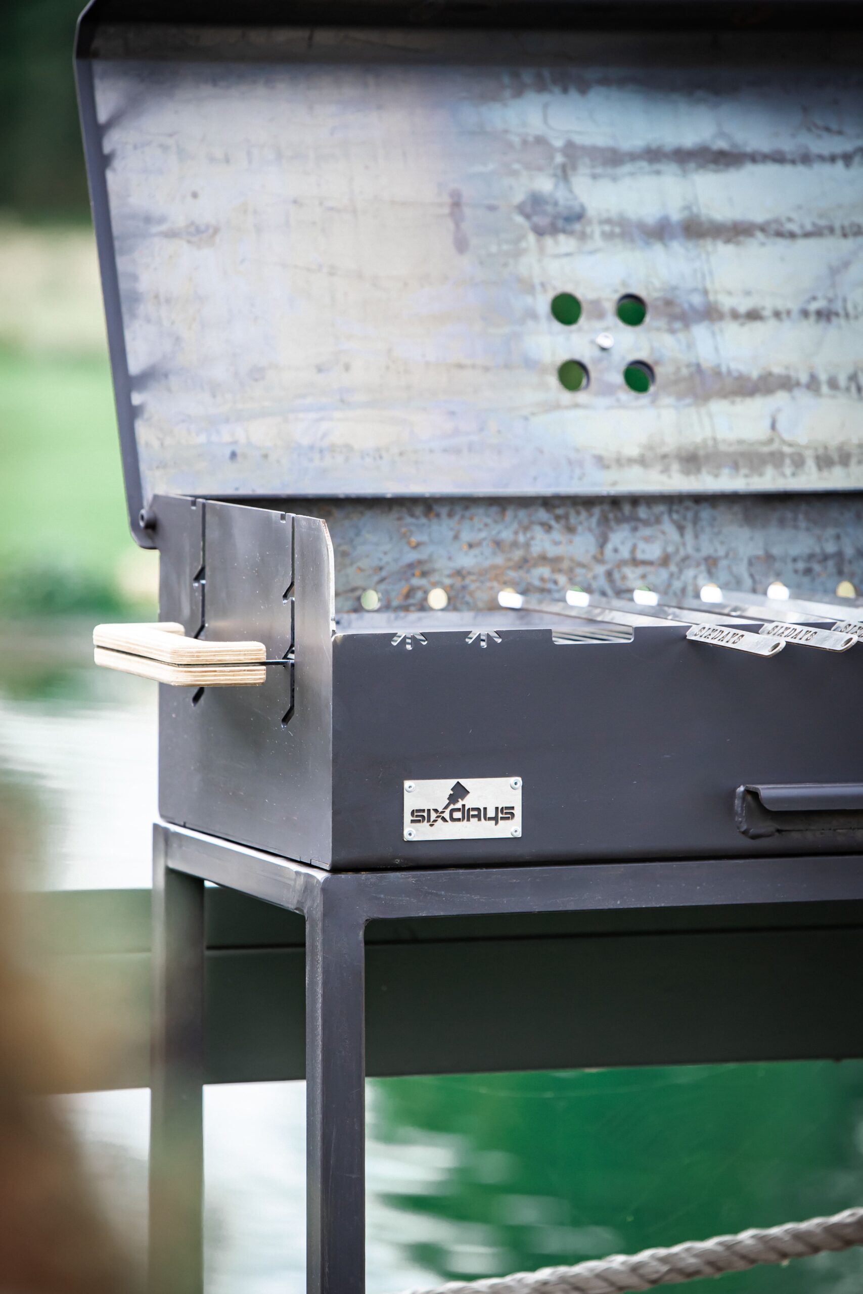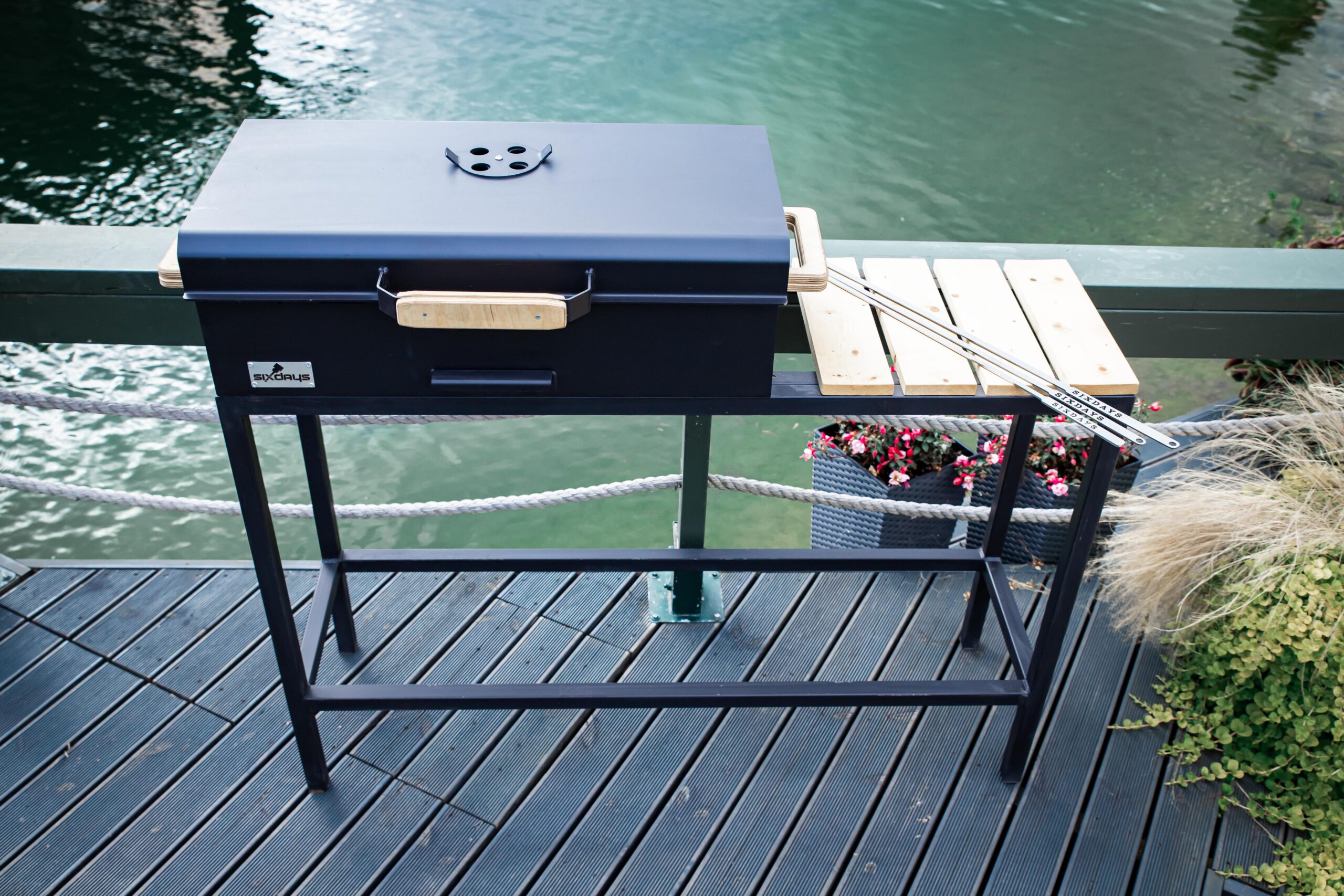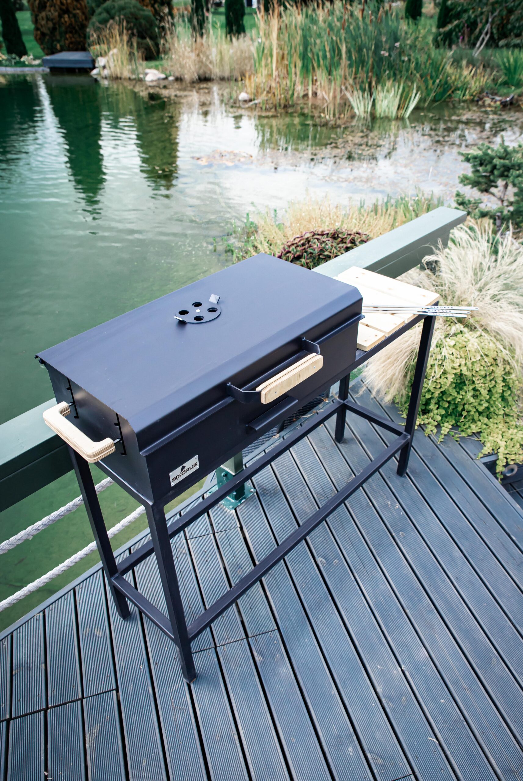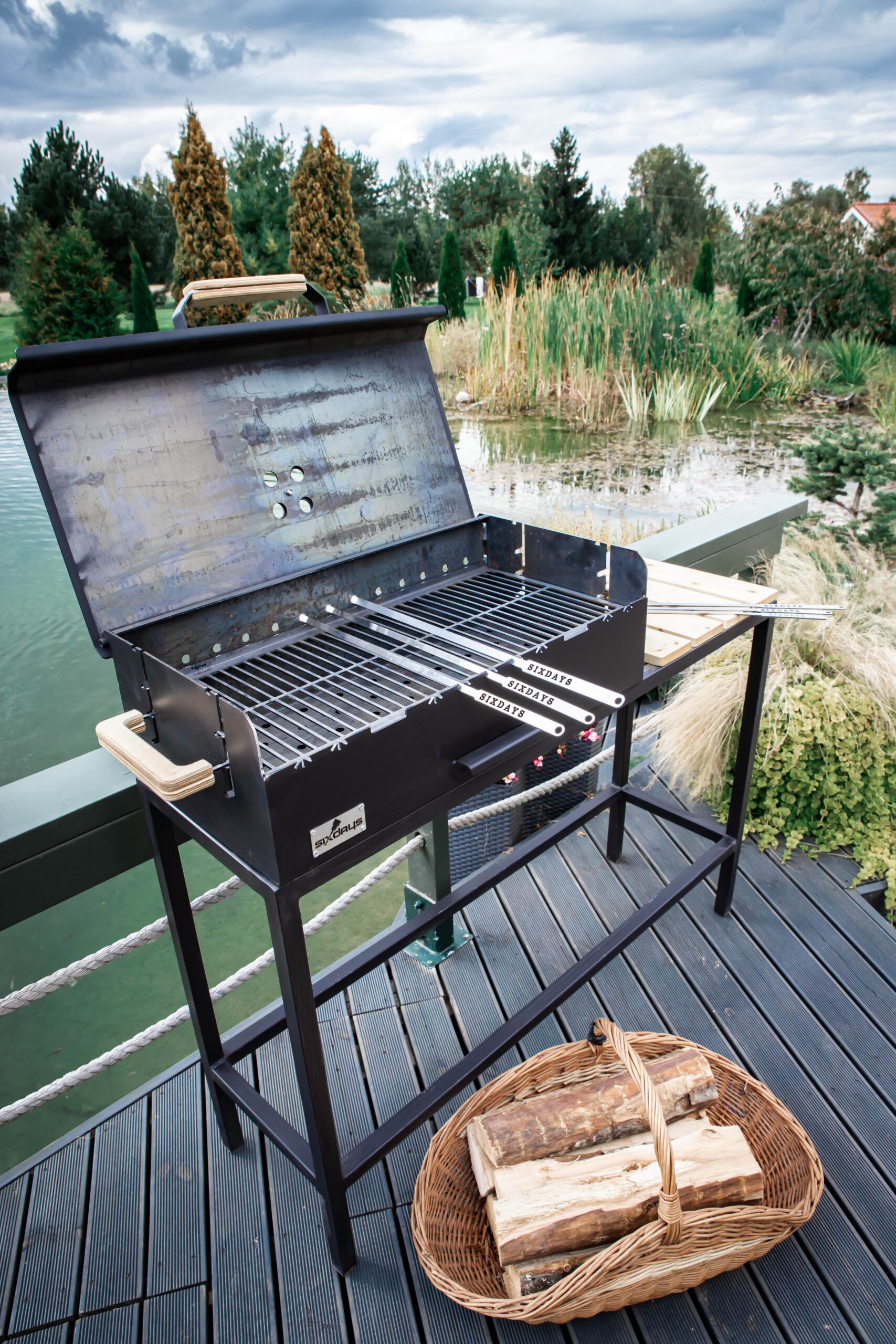 A large charcoal grill with a lid and a comfortable height-adjustable cooking rack. Burning off meat is no longer a problem, as the height adjustment of the grate prevents this. It can also be lowered in one easy movement when the heat of the charcoal starts to wane. There is also a smoke vent on the lid of the grill to adjust the cooking temperature to the right temperature.