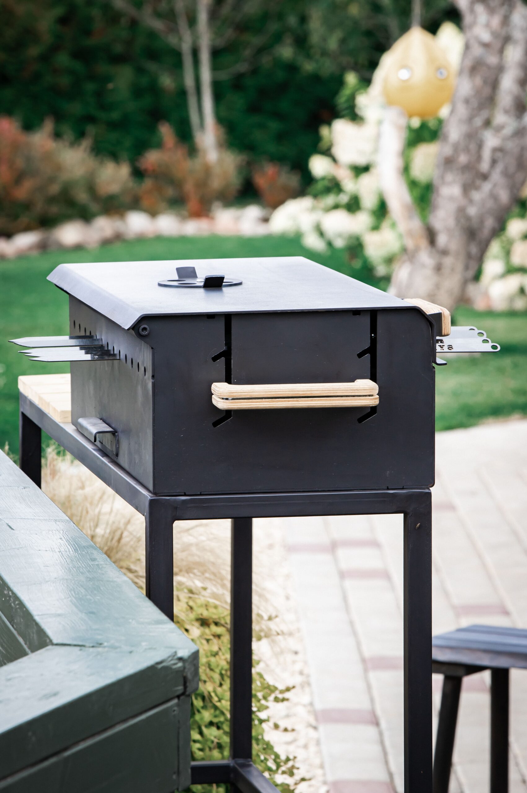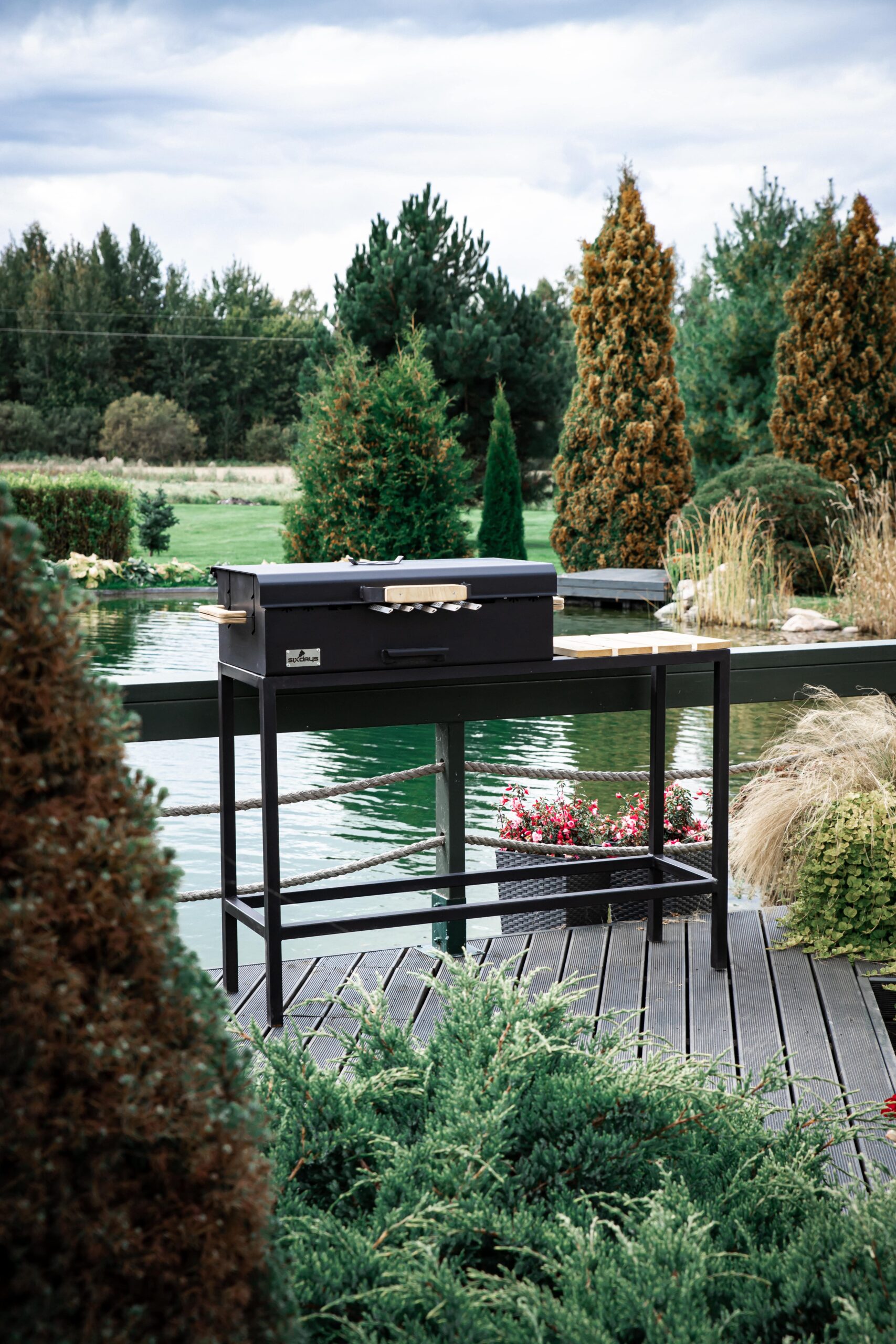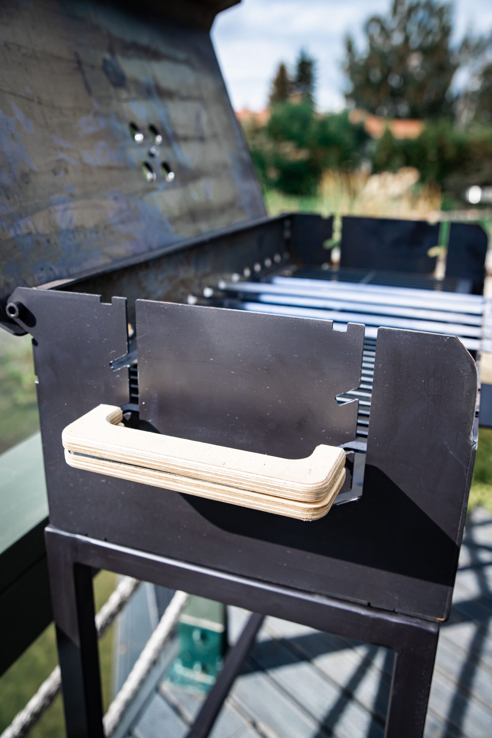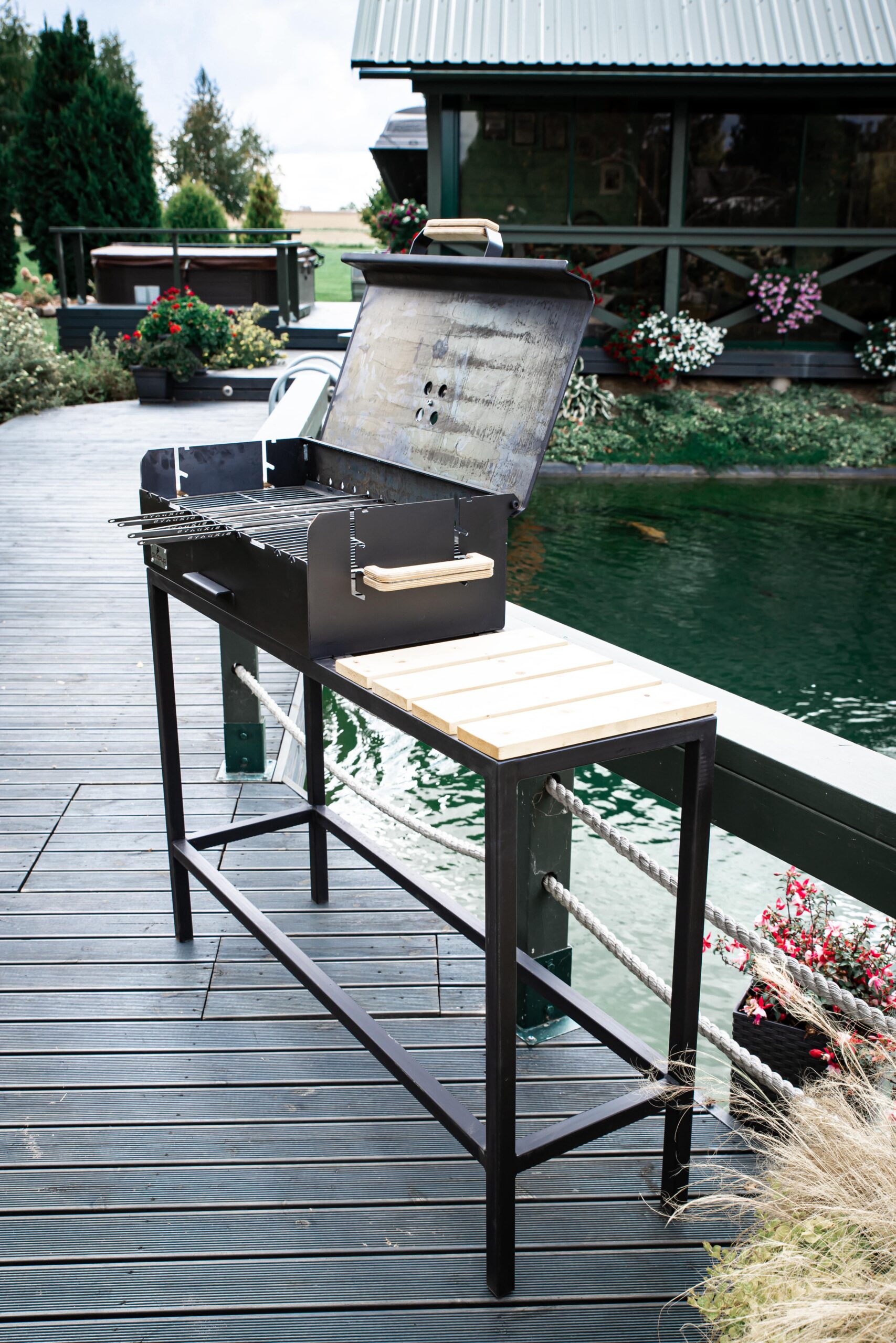 A large charcoal grill with a lid and a comfortable height-adjustable cooking rack. Burning off meat is no longer a problem, as the height adjustment of the grate prevents this. It can also be lowered in one easy movement when the heat of the charcoal starts to wane. There is also a smoke vent on the lid of the grill to adjust the cooking temperature to the right temperature.