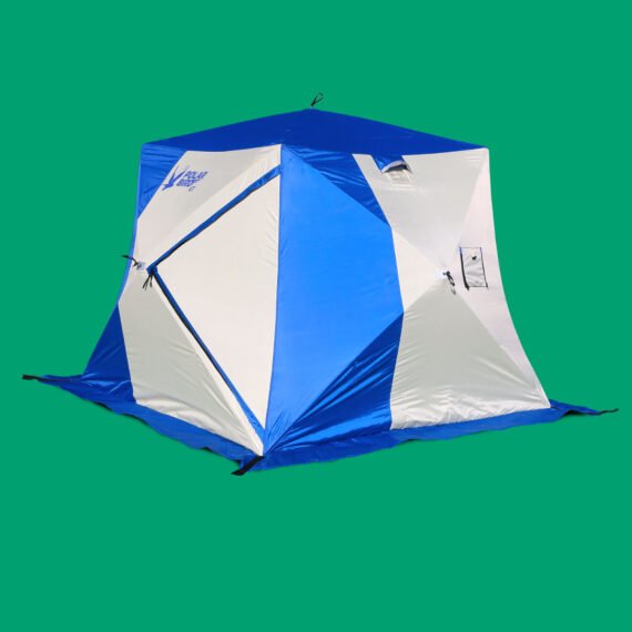 Insulated tents for ice fishing and all year round camping! Our winter tents are developed by seasoned specialists and passionate ice fishing enthusiasts. These tents have been tested not only in the harsh Siberian winters but also on hard water in the USA and Canada. They also have been quickly gaining popularity with Scandinavian clients. Polar Bird winter tents have a large number of benefits: Insulation – the fabric of these tents consists of three layers. Using special technology, the layers of the fabric are securely laminated together and thanks to this, no quilting is required and the amount of stitching in the fabric is minimal. And because of no quilting, there are virtually no cold bridges in the fabric which results in maximum thermal efficiency. Keep in mind – thermal efficiency works in the cold as well as heat. If in the wintertime, the tent stays warm then in the summer, it will keep outside heat away and your tent nice and cool. Floor – foldable and made from EVA foam, the floor is light and easy to transport. It’ll keep your feet warm and the moisture out. Its securely fastened on the perimeter with double Velcro and in case you need to move your tent (which does happen during ice fishing), no need to fold your tent together – just grab it by the corner and move it to a better place. Functionality and ease of use – thanks to pop-up technology – pitching the tent is easy and fast. For storage and transport, it also folds into a nice and compact package. The tents have ventilation openings and windows, big doors for convenient entry and exit and all of them are prepared for the use of a camping stove. Innovative materials of high quality – our pop-up tents have no separate rods and arcs to be installed. Every wall gets set up in one easy motion. Built-in fibreglass poles are manufactured in house and are virtually unbreakable.